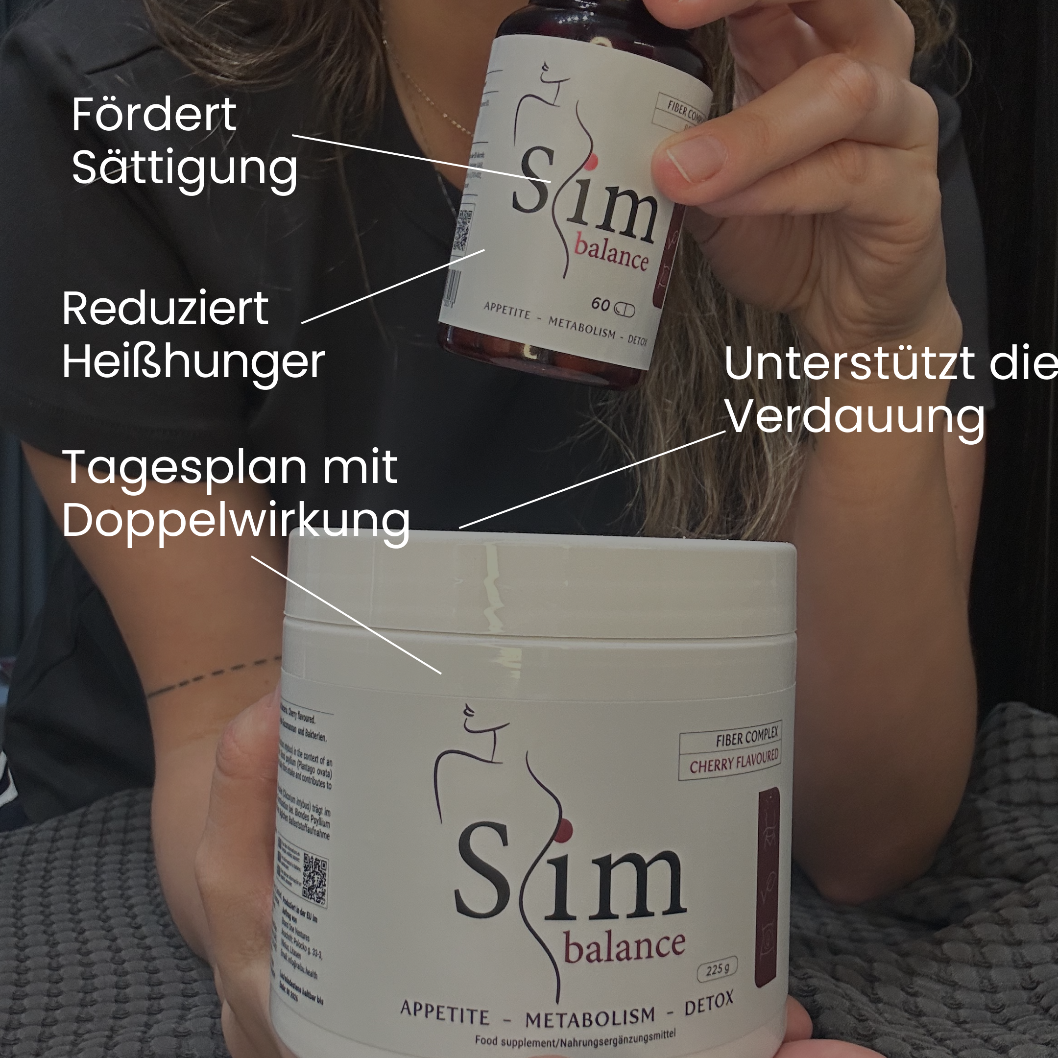 - Bundle mit 135 Portionen: Drei Dosen Slim Balance Pulver plus eine Packung Slim Balance Kapseln gratis.